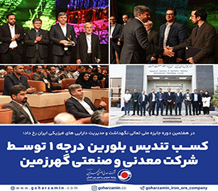 در هفتمین دوره جایزه ملی تعالی نگهداشت و مدیریت دارایی های فیزیکی ایران رخ داد؛ کسب تندیس بلورین درجه ۱ توسط شرکت معدنی و صنعتی گهرزمین 🔹شرکت معدنی و صنعتی